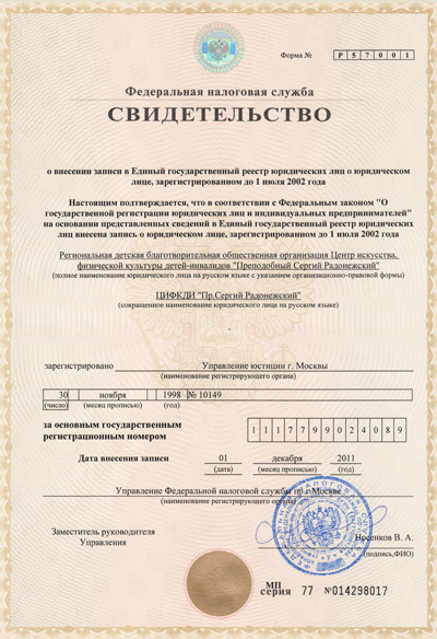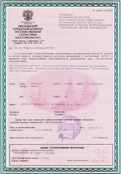 Центр искусства и физической культуры детей инвалидов Преподобный Сергий Радонежский -